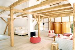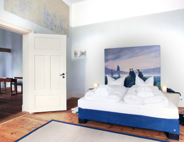 Die großzügigen Zimmer und Suiten sind nicht nur für Liebhaber von Design und Architektur attraktiv, sondern bieten auch für den Familien-Urlaub ausreichend Platz und Komfort. Die eigene Badestelle und ein weitläufiger Park mit riesigen Bäumen sowie das Kinder-Spiel-Haus im Garten sind besser als jeder Kinderspielplatz. In direkter Nachbarschaft gibt es einen Pferdehof, der für Groß und Klein Reitunterricht und Ausritte anbietet. In der schönen Kapelle finden Konzerte der Festspiele MV statt. In der gesamten Anlage spürt man den Sinn für Design und liebevolle Details. Auch Trauungen sind in derKapelle möglich, die Feier danach findet Platz in der ehemaligen Scheune statt, mit feinem Essen aus dem Hotel-Restaurant. Da das Haus in der Vergangenheit eine Schule beherbergte, heißt das Restaurant des Hotels „Klassenzimmer“ und ist thematisch passend gestaltet. Jedoch fühlt man sich gut umsorgt und kann ich gemütlicher Atmosphäre neben Frühstück und Kaffee und Kuchen auch fantastische Gerichte aus regionalen Zutaten genießen.